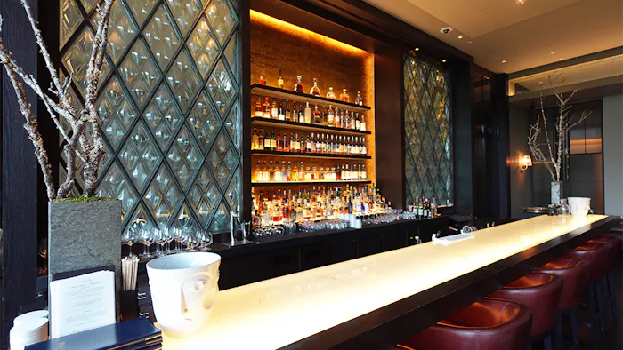 夕食後は「The Bar」へと向かいました。店内は重厚感があり一層ラグジュアリーな雰囲気。カウンターとゆったりとしたソファ席が配された大人の空間が広がっていました。壁一面には、ウイスキーがずらり。