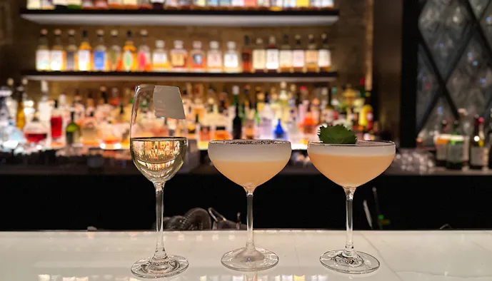 この日はシグネチャーカクテルをいただきました。左から「“NISEKO”by The SG Club&Don Julio 1942」「Furano」「Sayuri」。「“NISEKO”by The SG Club&Don Julio 1942」は、世界的に注目されるバーテンダーである「SG Group」の後閑信吾氏プロデュースによるもの。バーボン樽で2年~2年半熟成させたラグジュアリーテキーラ「ドン・フリオ 1942」を使用した1杯です。「Furano」「Sayuri」は、柑橘を使用したフレッシュなカクテルです。