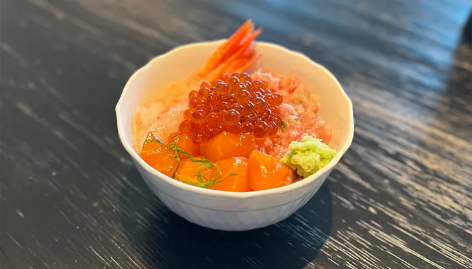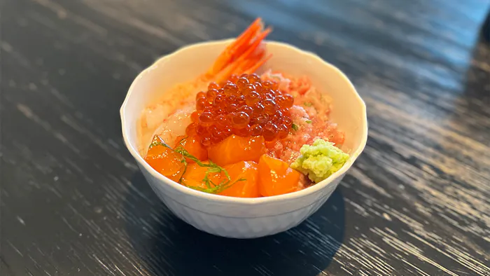 カウンターに並んであった海鮮は、ミニどんぶりにして堪能しました。