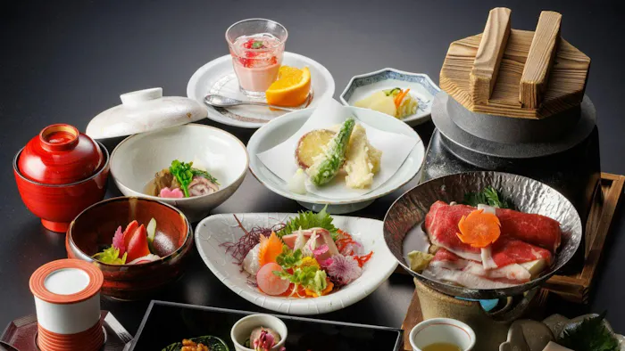 夕食は、地元の食材をふんだんに使い丁寧に料理した伝統の味。冬季はカニ鍋や、ボタン鍋(イノシシ)、鴨鍋、寄せ鍋などの用意もあり、山陰ならではの自然が育む滋味深い味わいに、旅の喜びを実感できることでしょう。