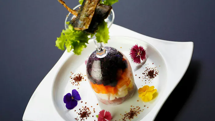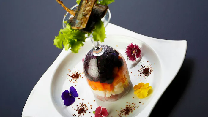 夕食はお食事処「Dining 縁月」にていただきます。お料理は「ミシュランガイド東京2024」に一つ星として掲載された東京・南青山にある日本料理店「てのしま」の林亮平シェフが監修。地元の旬食材を、季節感のある繊細な日本料理が楽しめます。