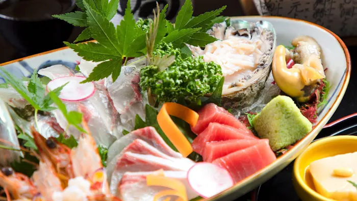 お食事は個室またはお食事処にていただきます。島原半島や近海で捕れた魚介を始め「地産地消」の考えに基づいて厳選した野菜やお肉を使用。自然の美しさや四季の豊かさを、目や舌で味わいましょう。