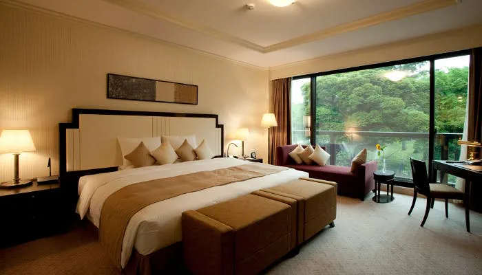 日本の伝統建築でもある平屋建ての「はなれ」、昭和初期の木造建築の美しさが残る「本館」、もみじ谷の自然を望む「新館」と、どのお部屋も情緒あふれる和の設え。個々に趣の異なる客室から、好みのお部屋を選ぶのも楽しいですね。秋には赤や黄色に染まった紅葉が窓の外を彩ります。