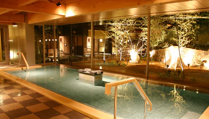 約15種類もの数を誇るお風呂には自家源泉を利用。氷河期にあたる2万年前から少しずつ地底に蓄えられた地下水で、毎分200リットルの湯量を誇ります。手入れが行き届いた庭園や萩城の城壁をイメージした設えを眺めながら、古代の湯の長い歴史に思いを馳せてみては。