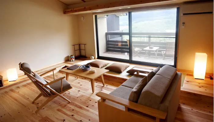 季節や天候、時間によって移り変わる景色を眺め、ゆるやかに流れる自然本来のリズムを肌で感じたら、壮大な山々の懐に包まれている感覚に。どこか懐かしい故郷のような“里の空間”がここにあります。
