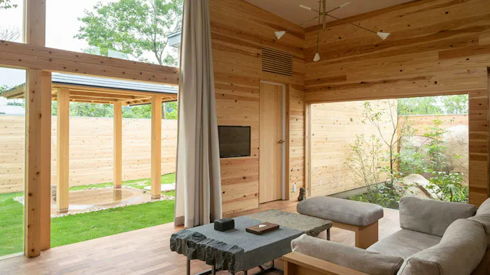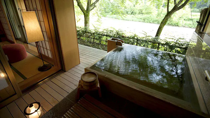 三重・湯の山温泉に居を構える「アクアイグニス別邸 湯の山温泉 素粋居」。古美術や工芸を配した美術館のような宿で、個性的な空間が広がる全12棟のヴィラには、源泉掛け流しの露天風呂が備わります。多彩なダイニングが備わる美食の宿としても知られ、素材を生かした美味を満喫しましょう。