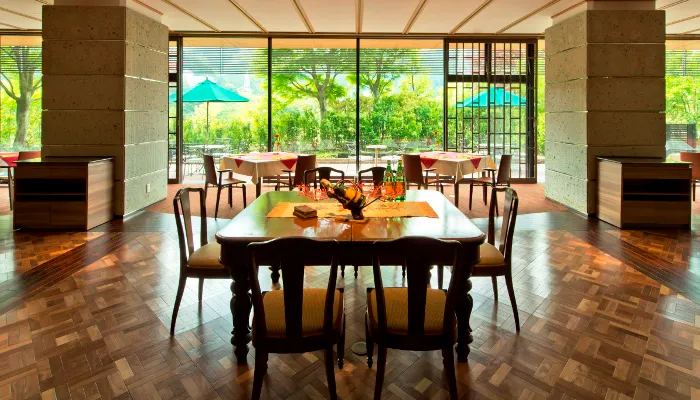 創業者の名前が付いたダイニング「ジョンカナヤ」では、吟味された地場の食材を仕立てた季節替わりの金谷流会席をいただけます。懐石料理をベースに洋のテイストを取り入れた“和敬洋讃”と、旬の野菜をふんだんに盛り込んだヘルシーな“渓流水明”。大きな窓から美しい庭を眺めながら、日光鬼怒川の春夏秋冬を目と舌で愉しみましょう。