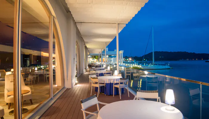 ギリシャ語で「港」という名のこのホテルは、ホテル目の前にヨットハーバーを完備し、海からのチェックインも可能。停泊する船や瀬戸内海を目の前に望むレストランでは、ギリシャ人シェフによる本格的なギリシャ料理をいただけます。フォトジェニックな建物だけでなく、食事でもエーゲ海・ギリシャを堪能し尽くしましょう。