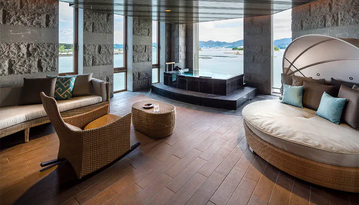 全室オーシャンビュー&スイート仕様の客室は、85室それぞれが異なるインテリア・デザイン。中でも2015年に誕生した2種類の「スパ・スイートルーム」は、最大で247平米もの広さ。南紀白浜の海と空を独り占めするオープンテラスデッキと、天然温泉露天風呂を備えたホテルで最上級のスイートルームです。異国情緒を感じるとともに、セレブリティな体験も叶うこと請け合いです。