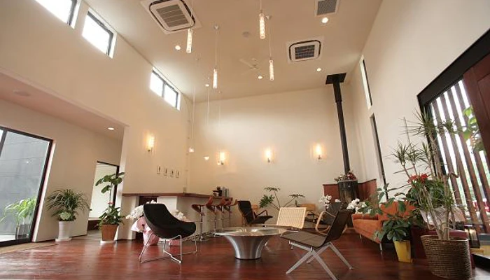 ロビーは白を基調とした開放的な空間が広がります。特にレセプションを兼ねたラウンジは、「旅館」という名からは想像ができないモダンな雰囲気。デザイン性と機能性に優れたテーブルやチェアがお洒落な印象です。夜にはカウンターバーにてワインやカクテルを嗜むこともできるので、夕食後に立ち寄ってみては。きっと素敵な夜のひと時を演出してくること間違いなしです。