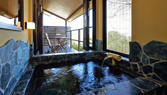 隠れ家気分の露天風呂で名湯を堪能する