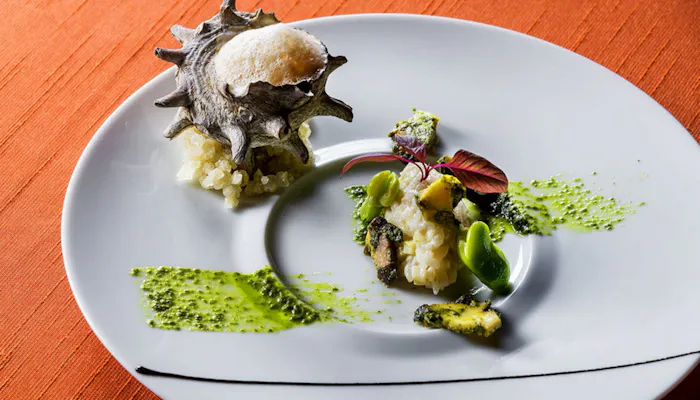熱海の高台に位置する「HIRAMATSU HOTELS & RESORTS 熱海」は、「ひらまつ」が手掛ける“滞在するレストラン”。近海で獲れた新鮮な魚介類や、日本全国から取り寄せた厳選食材を用いた料理の数々は、味はもちろん目にも美しい一皿ばかりです。ソムリエがおすすめしてくれるワインと共に、この土地ならではのマリアージュを堪能しましょう。