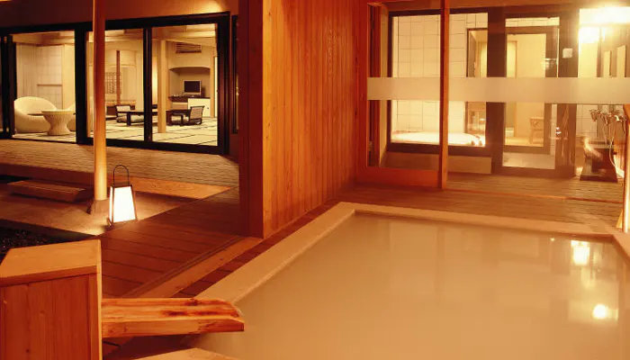 全8室スイート仕様の客室には、総檜造りの客室露天風呂を完備。注がれるのは3,000坪の敷地内から湧いた、効能豊かな自家源泉掛け流しの天然温泉です。木漏れ日や月明りを浴びながら、好きなときに好きなだけ、自分だけの温泉を堪能しましょう。お風呂上りは、宿こだわりのバスローブや浴衣に身を包みリラックス。ここは、何もしない贅沢な時間を愉しむための場所なのです。