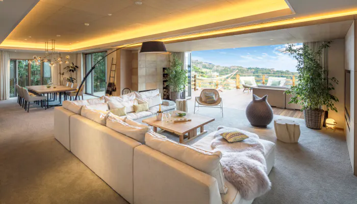 広くてラグジュアリーな館内もさることながら、こちらの宿の特徴はバトラーが常駐していること。送迎サービスやパーティーのセッティング、買い物代行など、要望に合わせたサービスを受けられます。出張料理人に食事の準備をお願いすれば、とことん贅沢なおこもりステイが叶います。