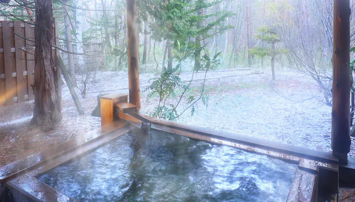 3.老舗宿に新設された露天風呂で2つの源泉の湯比べを楽しむ