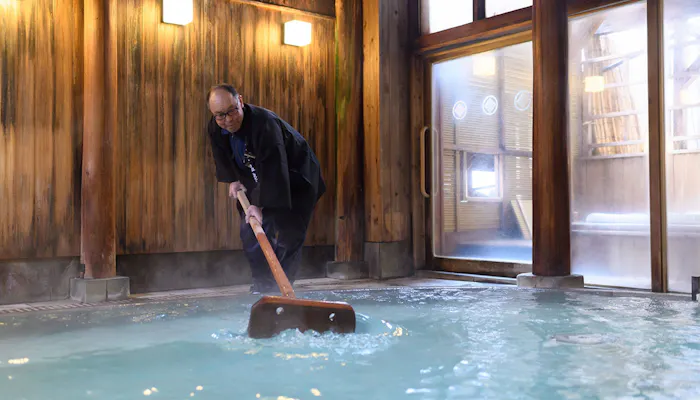湯畑のすぐ側という立地から、温泉は、草津最古と言われる白旗源泉を引き湯。湯小屋で一晩寝かせて適温にした湯を、湯守が丁寧に湯もみをすることで、最適な状態に保っています。大浴場や貸切風呂で、自慢の温泉を心ゆくまで堪能しましょう。