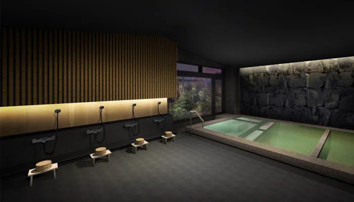 温泉は、湯畑源泉と万代鉱源泉の2つの源泉を引き湯。大浴場の内風呂は湯畑源泉、大浴場の露天風呂と離れの貸切露天風呂は万代鉱源泉となっており、どの湯船でも源泉掛け流しの新鮮な湯に浸かることができます。新しく生まれ変わった空間で、代々受け継がれてきたおもてなしと、草津の名湯にたっぷりと癒されて。
