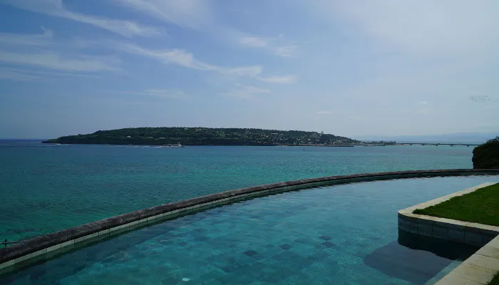 プールの水面を水平線と並行にすることで、まるで水平線に溶け込むかのようにデザインされたプール。
