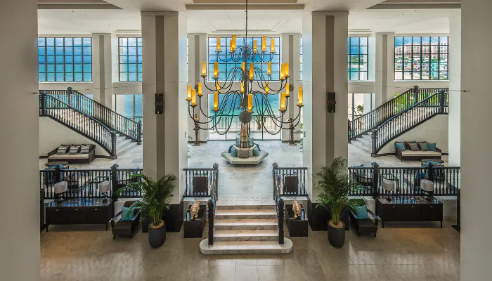 沖縄有数の海水浴場“タイガービーチ”に面する、全室オーシャンビューのリゾートホテル「ホテルモントレ沖縄 スパ&リゾート」。ピクチュアレスク(絵のように美しい)+リゾート(行楽地)を表す“ピクチュアレスクリゾート”をコンセプトに、館内にはアンティーク家具やアートワークなど、ホテルモントレならではの個性的な空間が広がります。