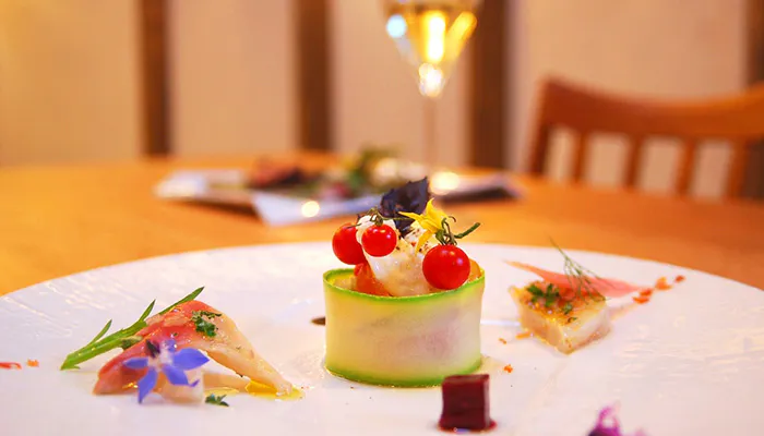 伊豆の食材はもちろん、ヨーロッパの食材も取り入れた和洋創作料理は、プランによって3つのコースをご用意。アレルギー、マタニティなどのリクエストにも応じたメニューには、シェフの優しさや気遣いなど、温かな人柄を感じることができます。英国の雰囲気を味わいながら、伊豆と欧州のマリアージュを楽しみましょう。
