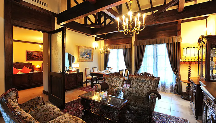 全5室の客室は、全室スイートのゆったりした造り。落ち着いた雰囲気とアンティークの優しさが、自分の別荘で過ごすような贅沢な滞在を叶えてくれます。中庭が見える「ガーデンビュースイート」は、デッキでティータイムといった優雅な時間も楽しめます。