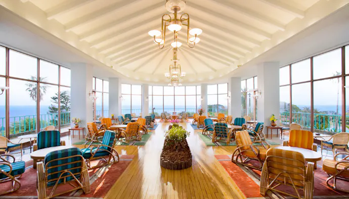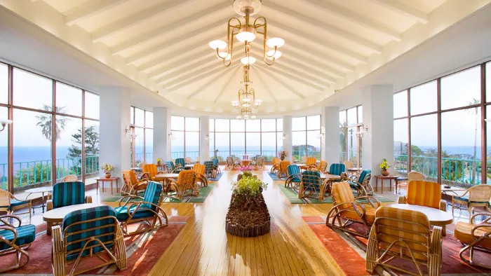 ラウンジ「サンパーラー」は、明るい雰囲気が印象的。大きく開かれたガラス窓からは、おだやかな相模灘を一望できます。ホテルの隠れた名物「オムライス」は、1954年にマリリン・モンローがジョー・ディマジオとの新婚旅行で訪れた際、ルームサービスで2回もオーダーしたという逸品です。他にもアフタヌーンティーやホテルメイドのケーキも好評なので、滞在中に味わってみては。