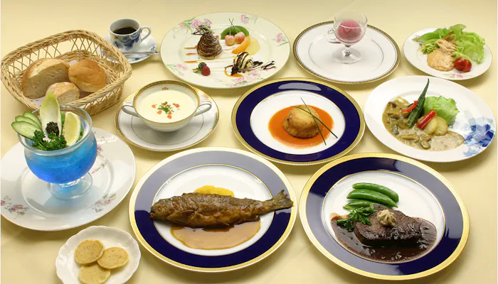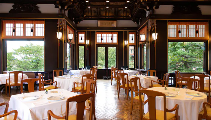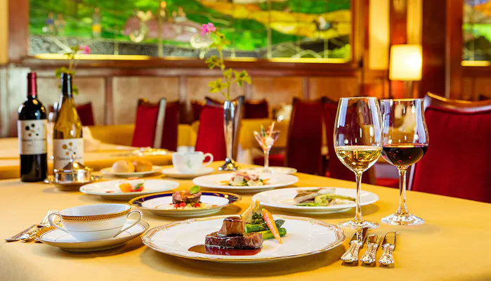館内には、和・洋・中のレストランを用意。四季の食材を使った中国料理店「萬山楼」、豊富な品揃えと繊細な味わいの京料理が自慢の「割烹 熊魚菴(ゆうぎょあん)」など、それぞれの味・素材・見た目にもこだわった料理がいただけます。その中でも、古き良き社交場時代の面影を残す「メインダイニングルーム」で提供されるのは、創業時からのレシピを現代風にアレンジしたフランス料理。代々受け継がれてきた伝統の味を堪能ください。