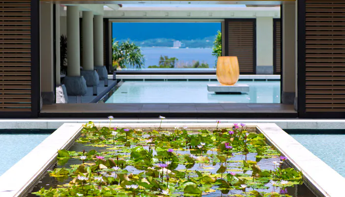 エントランスに足を踏み入れた瞬間、爽やかな風が通り抜ける開放的な造りに目を奪われます。スタッフの心温まるお出迎えの後に、座りながらウエルカムドリンクを飲みながらゆったりとチェックイン。リゾートならではの時間の流れが、日常の喧騒を忘れさせてくれます。