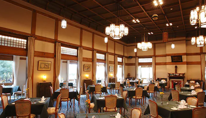 国賓や皇族をもてなす「関西の迎賓館」として1909年に開業した「奈良ホテル」。東京駅の駅舎などを手がけた辰野金吾が設計し、鹿鳴館の建設費の約2倍をかけて建てられたといわれています。周囲の古建築との調和を重んじた和洋折衷の見事な建物は“美術館のようなホテル”と形容されることも。奈良公園に隣接しており、興福寺などの世界遺産をはじめとする多くの名所も徒歩圏内なので、観光の拠点としても便利です。