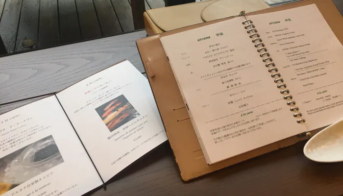 夕食の案内も一緒に。“オーベルジュ”ならではのメニューに、今から期待が膨らみます。