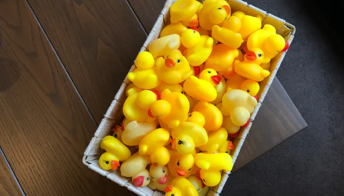 私たちは、お風呂グッズ「あひる100匹」をレンタルしてみました。湯浴みの際のお楽しみです。