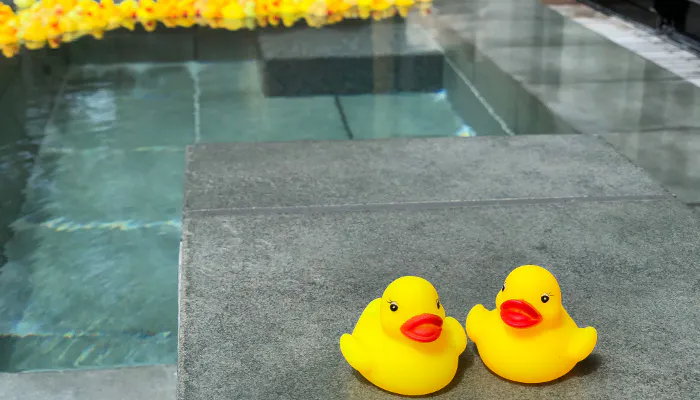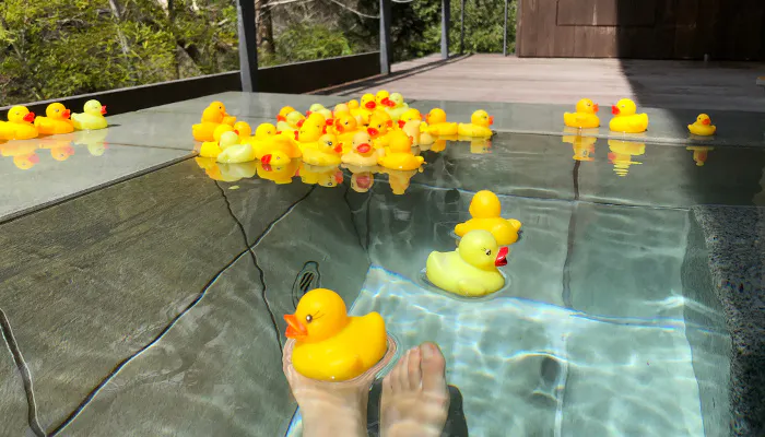 前日にレンタルしたあひるも浮かべてみました。あひる達も気持ちよく泳いでいるかのようで、ほっこり。フォトジェニックな写真も撮れるので、ぜひレンタルしてみては。