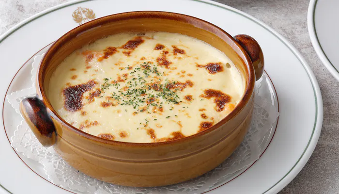歴史を感じる建物が有名な「ホテルニューグランド」ですが、ホテル発祥の伝統料理が多いことでも知られています。体調を崩したゲストのためにと、初代総料理長のサリー・ワイルが即興で創作した一皿は「シーフード ドリア」としてホテルの名物料理のひとつになりました。「スパゲッティ ナポリタン」や「プリン・ア・ラ・モード」など、今や世の中の定番となったホテルの伝統料理は、本館1階の「ザ・カフェ」でいただくことができます。