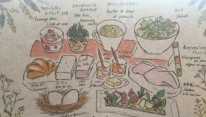 料理に添えられたメニューのイラストも手書き。可愛らしいイラストを見ながら、「次は何を食べようかな?」と考えるのがとても楽しかったです。