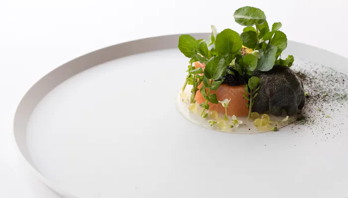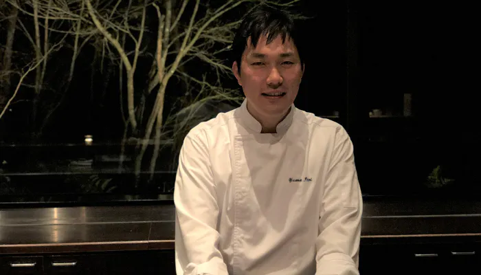 料理長の糸井佑磨氏は、ホテルのオープン当初からキッチンに立ち、2年間を経て渡仏。フランス国家最優秀職人章を持つファビアン・ルフェーブル氏の右腕として活躍しました。帰国後は伊豆の豊かな自然に魅了され再び「arcana izu」に戻り、料理長に就任。“五感を刺激するエモーショナルフレンチ”を生み出し続けています。
