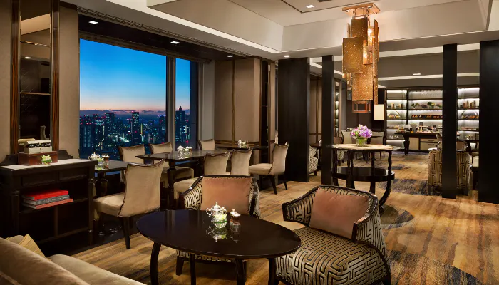 最上階53階に位置する「クラブラウンジ」は、クラブレベルのスイートまたはデラックスルームの宿泊者だけが利用できる特別な場所。レジデンスをテーマに4つのエリアに分かれており、シーンや気分に合ったお好みの空間で、思い思いの寛ぎを叶えられるのが魅力です。フードプレゼンテーションは1日5回。カクテルタイムだけでなく、ウェルカムドリンクや朝食でもシャンパンをいただけるのは、ザ・リッツ・カールトン東京ならでは。クラブレベルに宿泊する特別感を高めてくれます。