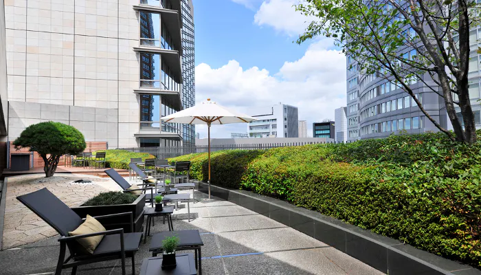 クラブキング/ツイン以上の客室に宿泊すると、ホテル10階に位置する専用ラウンジ「グランド クラブ」を利用可能。和モダンをテーマにしたラウンジには、500平米もの広々としたテラス付き。緑が多く、開放感あふれるテラスでシャンパンを片手に寛げば、都心に居ることを忘れてしまいそうに。ノートPCとiPadのレンタルを行っている他、テラスを含む全エリアでWi-Fiを使用できるので、ビジネスでの利用にもおすすめです。