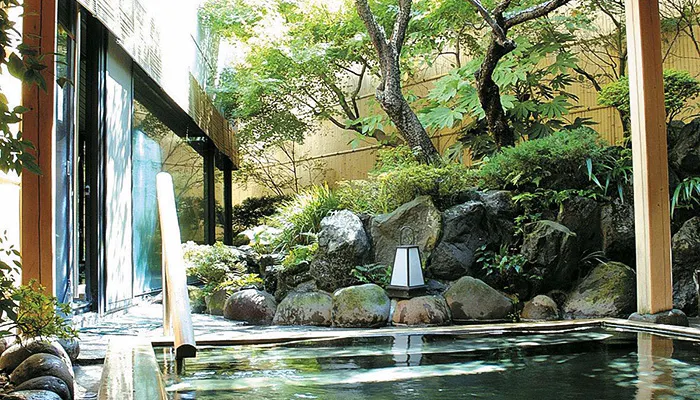 かつて東郷平八郎に愛され、「健身湯」と命名された温泉を源泉掛け流しで堪能できる「ラフォーレ倶楽部 伊東温泉 湯の庭」。露天風呂や貸切風呂、足湯などで名湯を楽しむことができます。