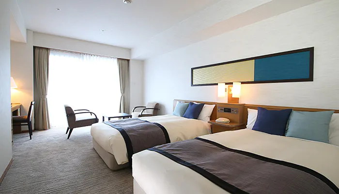 優しい色調のインテリアで統一された客室が落ち着く「ホテルハーヴェスト伊東」。2016年にはレストランやロビー周辺をリニューアルし、モダンとリゾートが融合した新空間となりました。