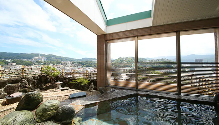ホテル最上階には美しい街並みを一望できるプールや、天城連山や相模湾の眺望が魅力の大浴場や露天風呂を完備。予約制の貸切風呂やサウナなども併せて、自由な滞在を楽しみましょう。
