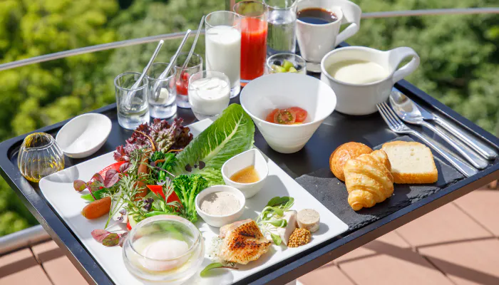 インルームでいただく朝食は、“洋朝食”と“和朝食”から選びましょう。キラキラと輝く海を眺めながらの朝食は、1日のエネルギーチャージになること間違いなし!チェックアウトが12時なので、朝食をいただいた後もお部屋でのんびり過ごせるのが嬉しいです。