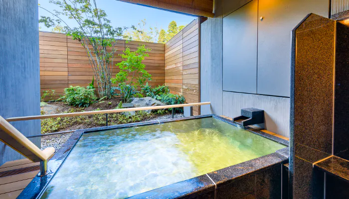 2つの半露天の貸し切り風呂では、家族団らんの時間を過ごせます。注がれるのは元箱根温泉の源泉掛け流しの湯。プライベートな湯浴みに疲れも存分に解れそうですね。大切な思い出の1ページを作りましょう。