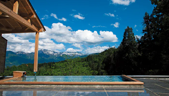 日本百名山・巻機山をはじめとする、上信越国境の山々を望む“湯処 天の川”は、開放的な雰囲気が魅力の露天風呂。注がれる大沢山温泉は、入浴中はツルツル、湯上りはさっぱりとした肌触りが特徴です。効能豊かな美肌の湯に、お母さんも喜ばれることでしょう。