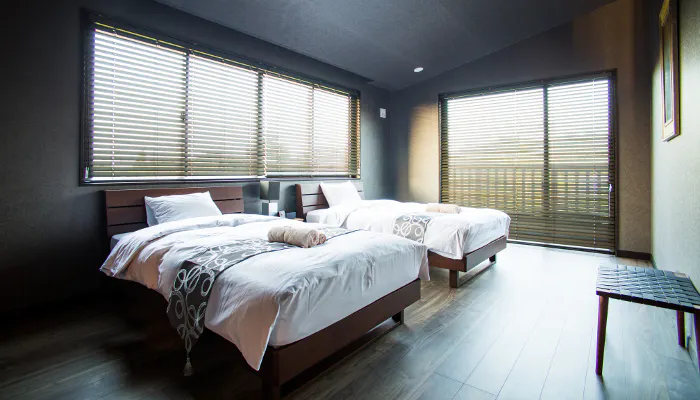 “Cairns House”には3つのベッドルーム、“Cairns House ANNEX”には2つのベッドルームが備わり、就寝時はプライベートを保てるのも嬉しいところ。2棟を利用すれば、最大16名まで宿泊可能なので、大人数での旅行にも最適です。