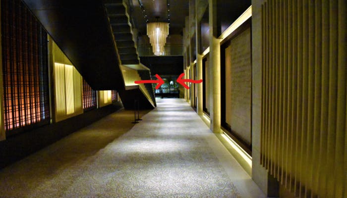 地下1階には、ちょっとした秘密スポットがあります。エレベーターの横のスペースに立つと、真正面にあるお月さまの中に自分の姿が映るのです。聞かなければ絶対に気づかないと思うのですが、その分、知った時のサプライズが嬉しいです。