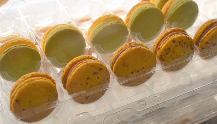 世界でここだけでしか購入できない、こちら限定のマカロン「ジャルダン ド 京都」は、煎り番茶の風味のホワイトチョコレート ガナッシュとスモーキーな香りを堪能できる逸品です。