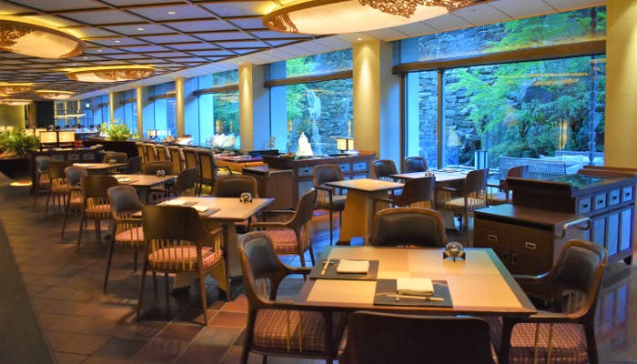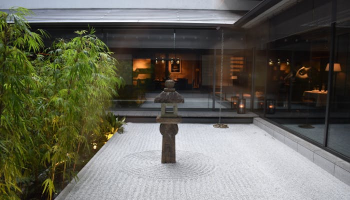 灯篭のある枯山水のお庭を望みながら朝食をいただくことも。この歴史的価値のある和の空間で、イタリア料理をいただけるなんて、粋ですね。
