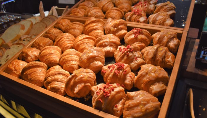 ピエール・エルメ・パリのパンがズラリと並びます。普通の朝食会場で、ピエール・エルメ・パリのクロワッサンをビュッフェでいただけるのは、ここザ・リッツ・カールトン京都ならではです。