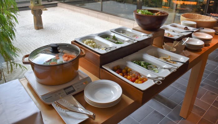 サラダや前菜などのコールドミールのほか、温野菜の用意もあり、女性にとっては有難いですね。