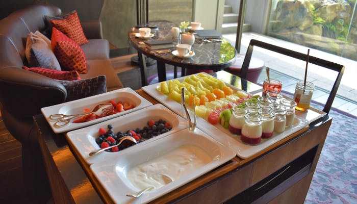 ワゴンサービスで提供されるフルーツ。いずれも上質で、みずみずしく、朝から幸せな気持ちになります。